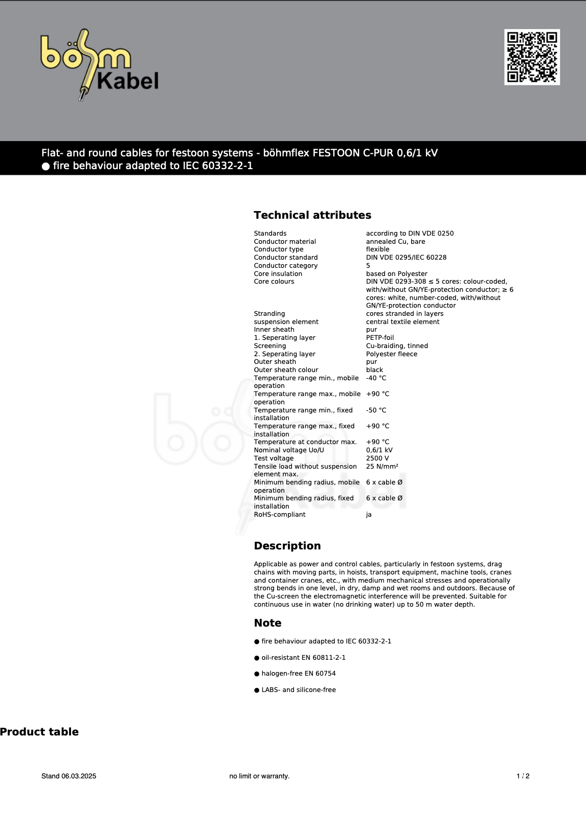 BOHM KABEL - böhmflex FESTOON C-PUR 0,6/1 kV