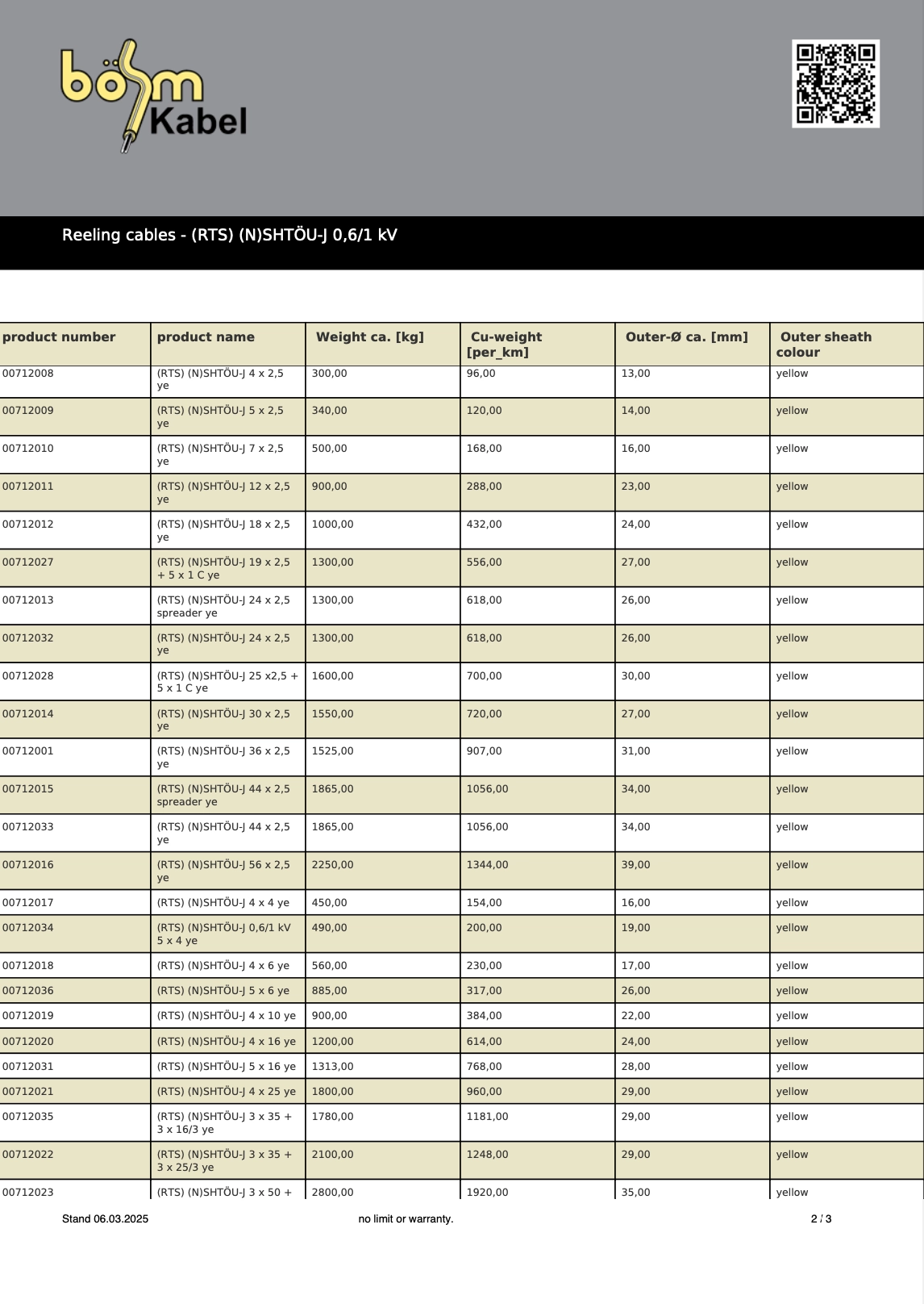 BOHM KABEL - (RTS) (N)SHTÖU-J 0,6/1 kV