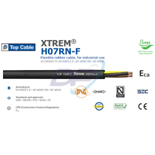 Nhờ đặc tính mềm dẻo đặc biệt và độ bền cơ học, cáp Xtrem® H07RN-F được xem là lý tưởng để truyền tải điện ngay cả khi lắp đặt cố định hay di động. Việc sử dụng điện áp danh định lên đến 1000 V được chấp nhận trong các cụm được bảo vệ cố định. Cáp Top Cable Xtrem® H07RN-F được thiết kế để cấp nguồn cho tất cả các loại thiết bị điện bao gồm động cơ và máy bơm chìm trong hệ thống lắp đặt nước sâu (AD8).