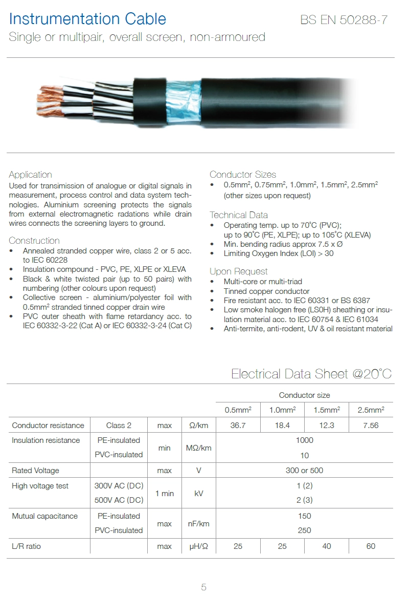 CS DYNAMIC-CU/XLPE/OS/PVC 300/500V to BS EN 50288-7