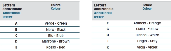 (**) Add to the code the letter R for conductor in bare copper (Example: 1x1.5mm² orange, red copper conductor N0017FR).