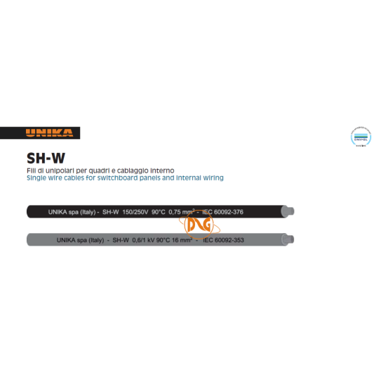 For cross-sections 1 mm² and above UNIKA (Italy) – SH-W 0,6/1 kV 90°C cross-section – IEC 60092-353 – IEC 60332-1-2 – traceability code
