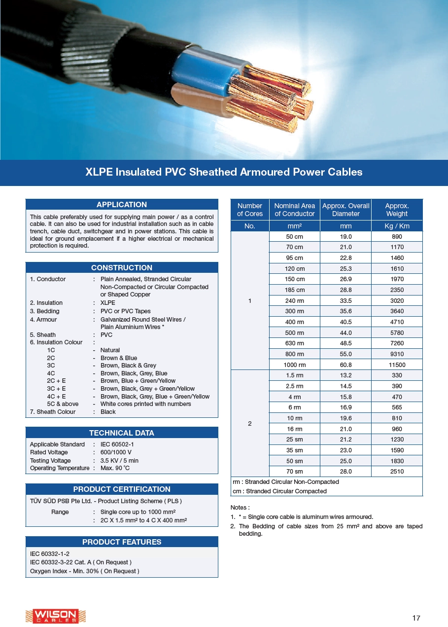 WILSON CABLE-CU/XLPE/PVC/SWA/PVC (XSP) 0.6/1KV