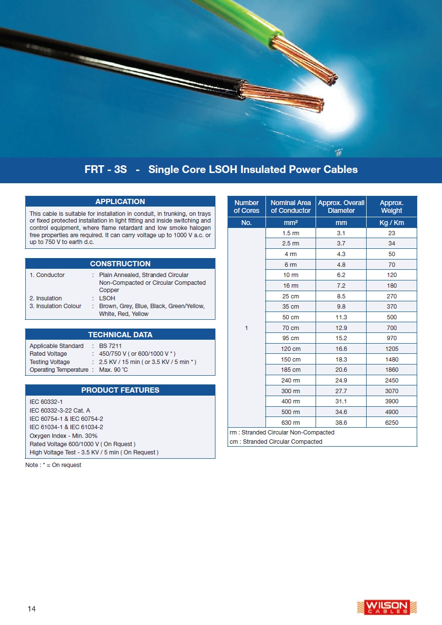 WILSON CABLE-FRT-3S 450/750V ( 0.6/1KV) LSOH
